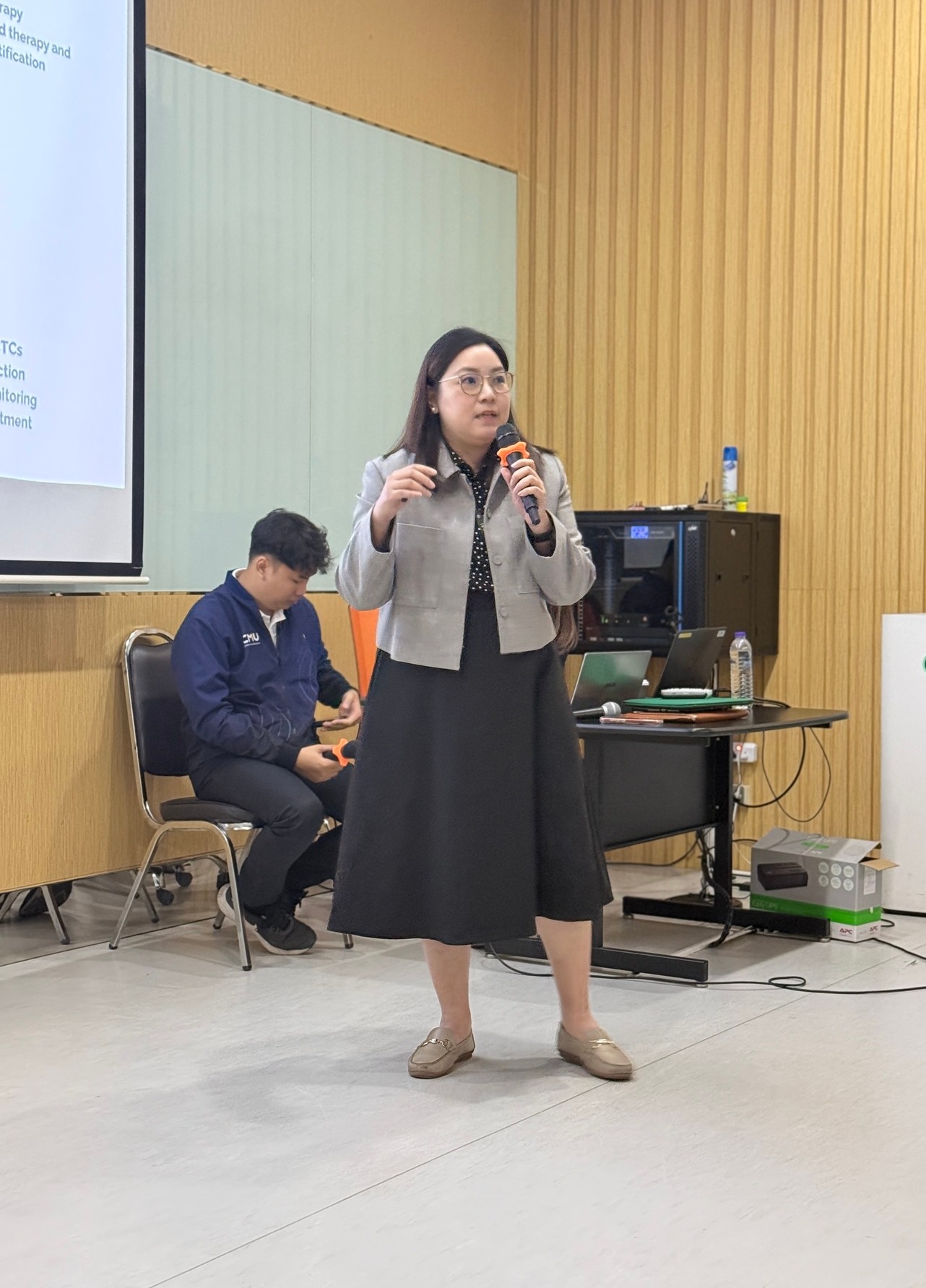 นอกจากการหารือเชิงนโยบาย คณะผู้บริหารยังได้รับฟังการนำเสนอผลงานนวัตกรรมต้นแบบที่มีศักยภาพในการต่อยอดเชิงพาณิชย์และเป็นประโยชน์ต่ออุตสาหกรรมสุขภาพ ณ ห้องประชุมชั้น 9 อาคารเรียนและปฏิบัติการ 50 ปี ได้แก่: